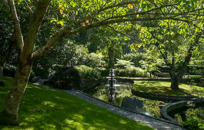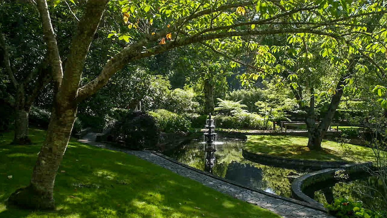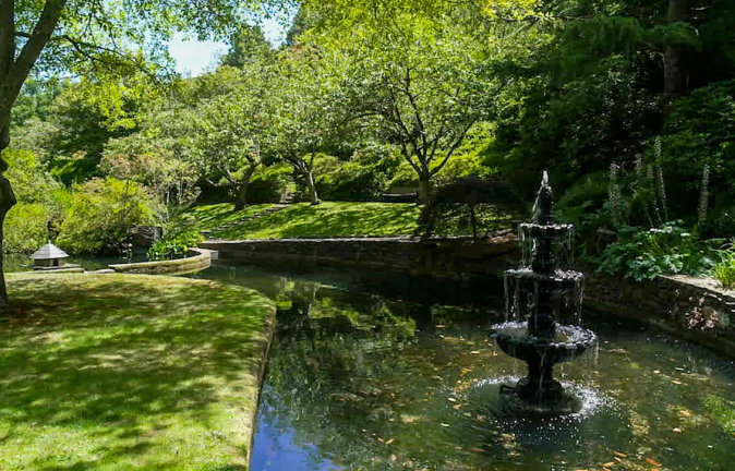 The remediated and restored European inspired landscape garden was originally designed by well-known landscape designer, the late Paul Sorensen, featuring dams, streams, bridges, and over 200 varieties of cool climate trees and shrubs.