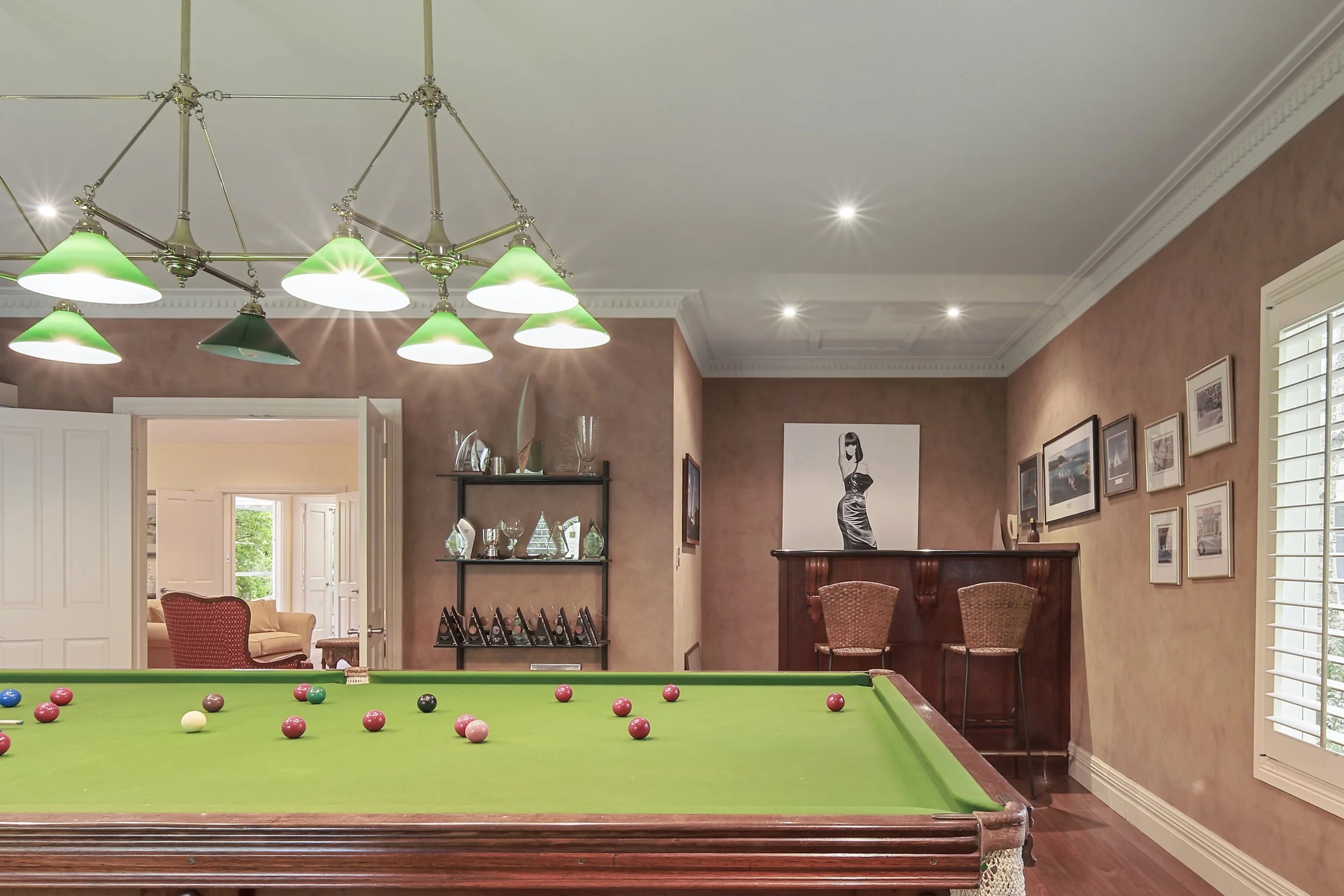Over the ensuing years, the property evolved into a refined yet relaxed sanctuary. Inside, the home unfolds through a sequence of beautifully proportioned rooms, from dual summer and winter lounges with an open fireplace to a grand billiards room with a century-old table and adjoining bar. A newer kitchen and dining area provide the perfect heart to the home, complemented by expansive windows framing the rolling countryside.