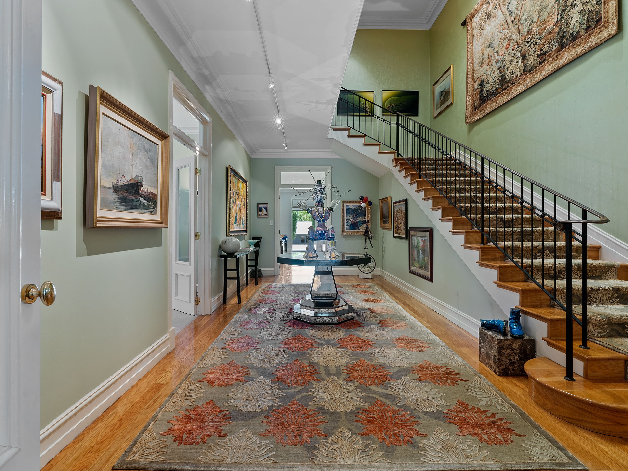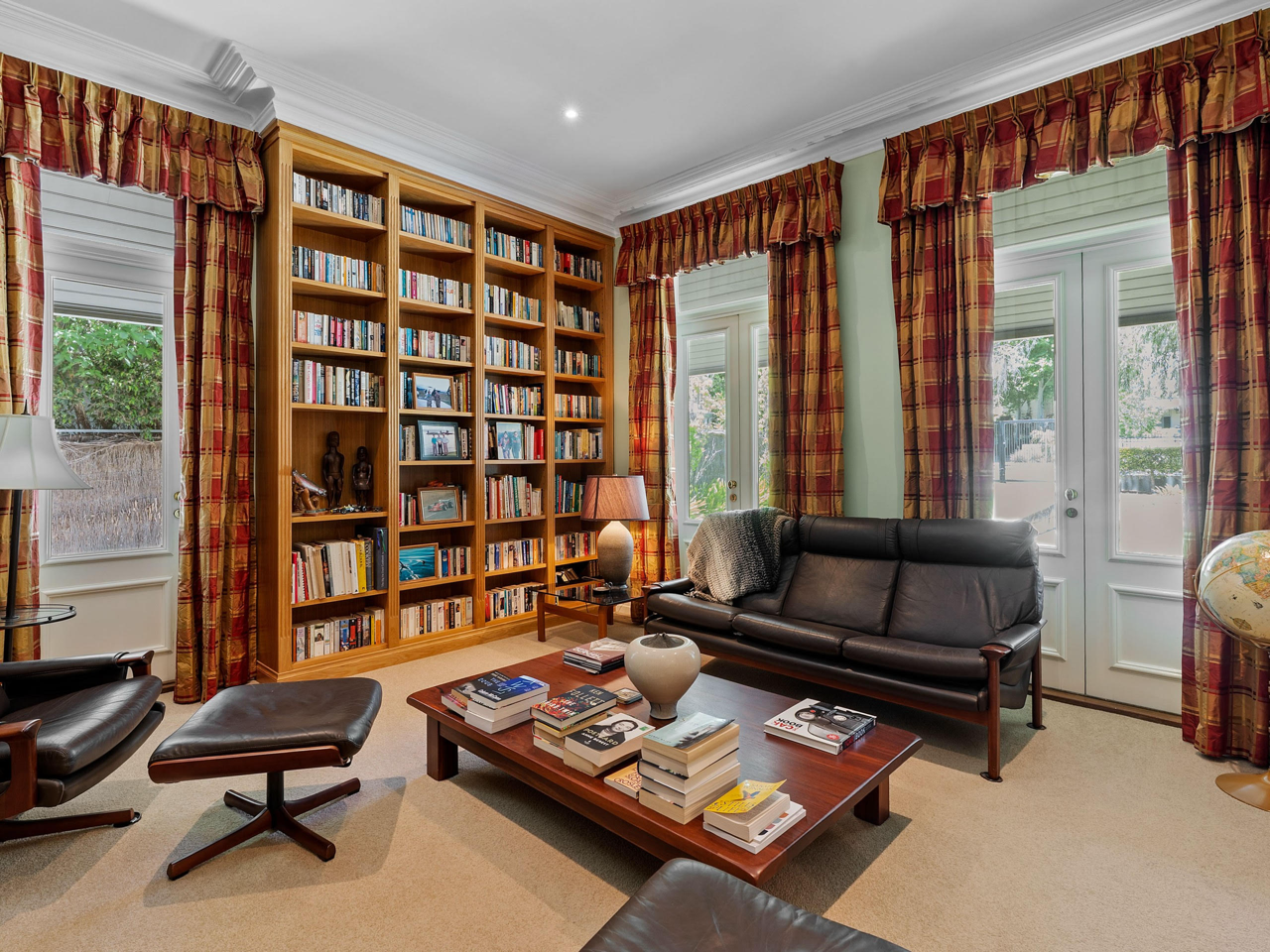 A series of beautifully proportioned living, dining and entertaining spaces flow seamlessly throughout the ground floor, including a sophisticated formal dining room, library with bespoke cabinetry, and a warm, inviting family zone anchored by a generous chef's kitchen.