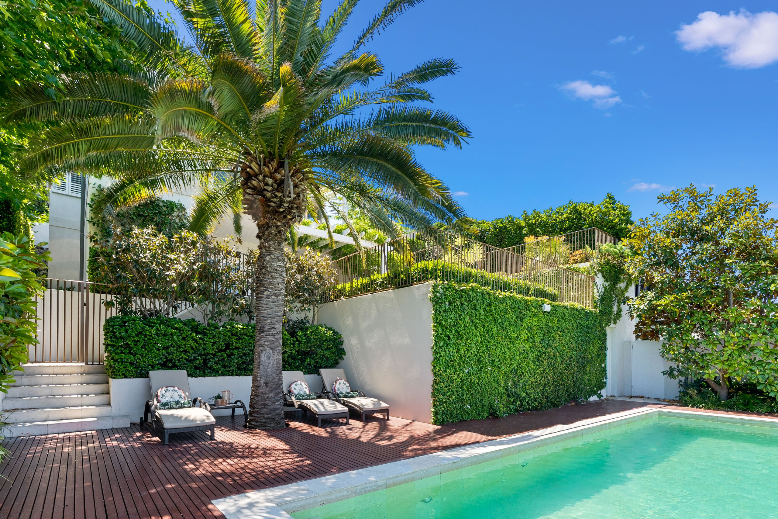 Outdoors, landscaped gardens, multiple terraces and lush greenery create a serene retreat for morning coffee, family playtime or sunset drinks. A sparkling pool and timber deck gaze across the river and towards the city, framed by mature Wisteria vines and manicured gardens.