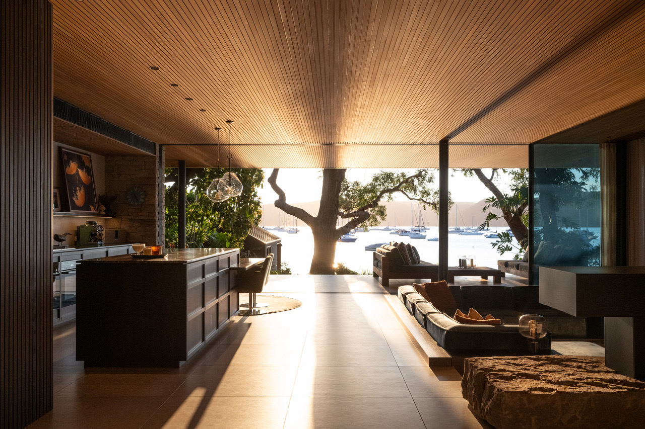 Designed as an extension of its leafy shoreline setting, this recently built Northern Beaches residence blends architectural excellence, prestige, and privacy, with direct access to the sands of Clareville Beach.