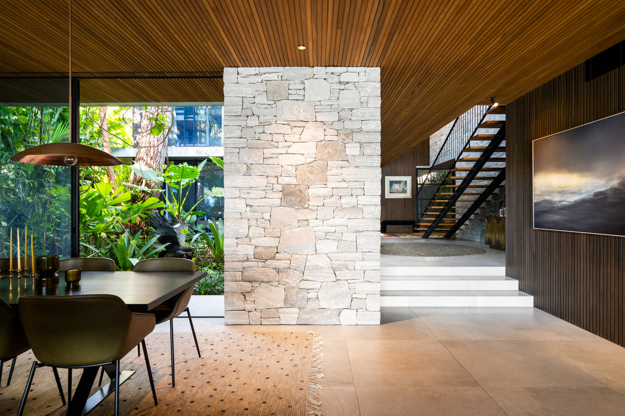 The materials used in the home are all elemental where possible, from the extensive use of Australian tallow-wood hardwoods to the northern rivers sandstone featured throughout.